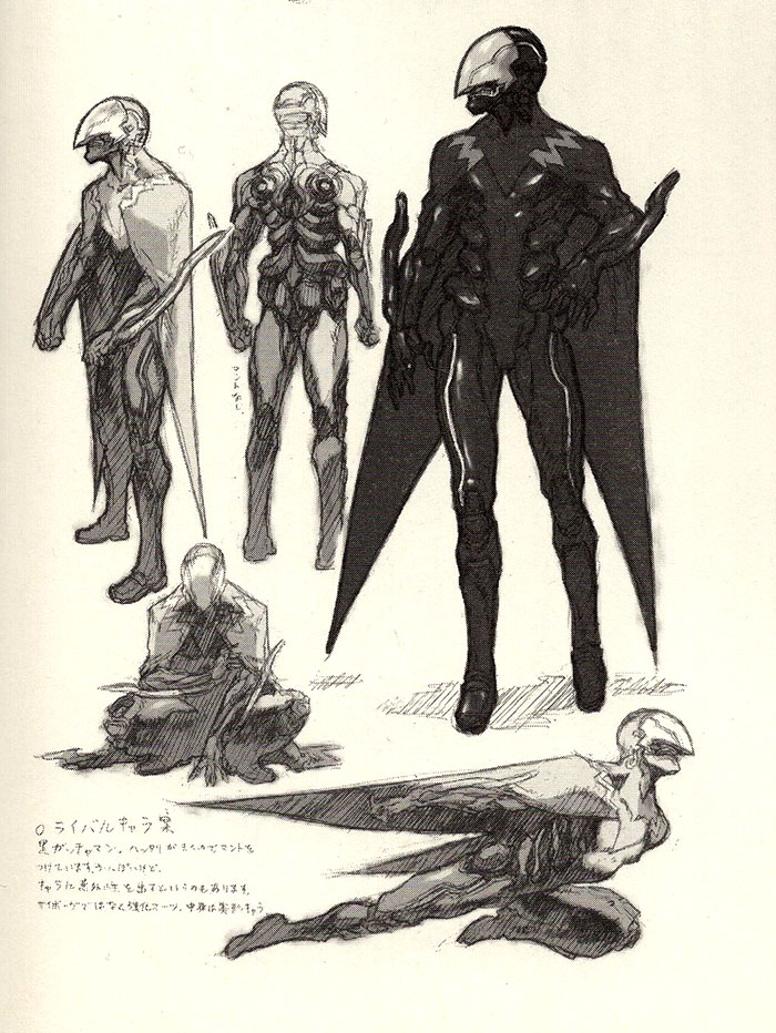 Después de verlos, decidí que quería contribuir creando algún tipo de personaje extraño e inusual, tal vez un jefe enemigo. Eso es lo que les dije, pero pronto supe que ya habían preparado un muy conjunto específico de instrucciones de diseño para mí. (risas) Querían que fuera un enemigo que, cito, “era como un ninja, usaba dagas y misiles guiados y luchaba en la oscuridad.” Leí eso y dije, “¿En serio? ¡ya terminaste el diseño tú mismo!”