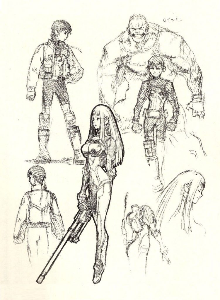 —Cuando creabas los diseños de personajes de ciencia ficción para Anubis, imagino que fuiste influenciado por Gundam y los muchos otros precursores de mechas. Los fanáticos de este género seguramente notarán similitudes, pero al mismo tiempo, siento que hay algo único y difícil de precisar sobre el estilo visual de Anubis.