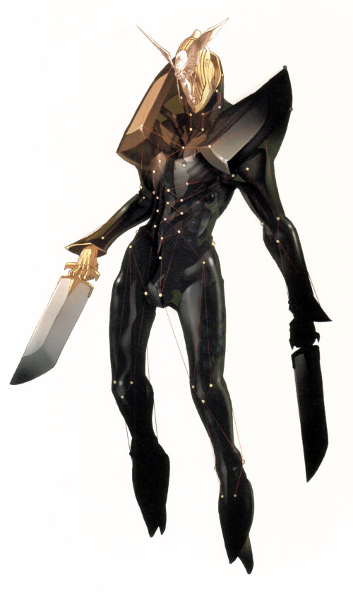 Kaneko: Sí. Creo que le diste en el clavo. Cuando miras anime de robots más antiguos, esos villanos mecánicos siempre tienen alguna motivación o propósito detrás de sus acciones, ¿verdad? Los enemigos tienen sus propios problemas e inquietudes, no sólo están ahí como oponentes de los buenos. Lo que realmente hice en Anubis fue un poco diferente, pero sí, quería que hubiera ese tipo de calidad “fuera de ” en el personaje que estaba creando para Anubis. Oye, después de todo me llaman “Demon Painter”. 5 (risas)